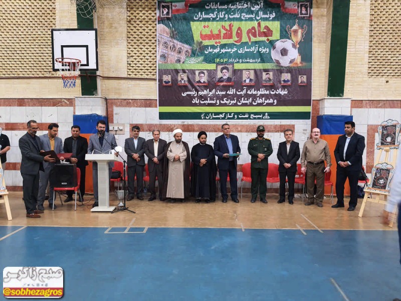 در پایان رقابت های فوتسال جام ولایت بسیج نفت و گاز گچساران با حضور امام جمعه گچساران ، جانشین سپاه ناحیه گچساران، مدیرعامل شرکت نفت و گاز گچساران و برخی روسای ادارات این شرکت؛ از نفرات و تیم های برتر این دوره از مسابقات تجلیل به عمل آمد.
