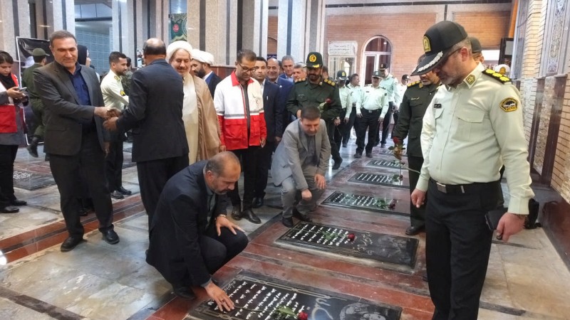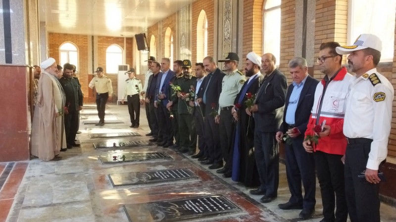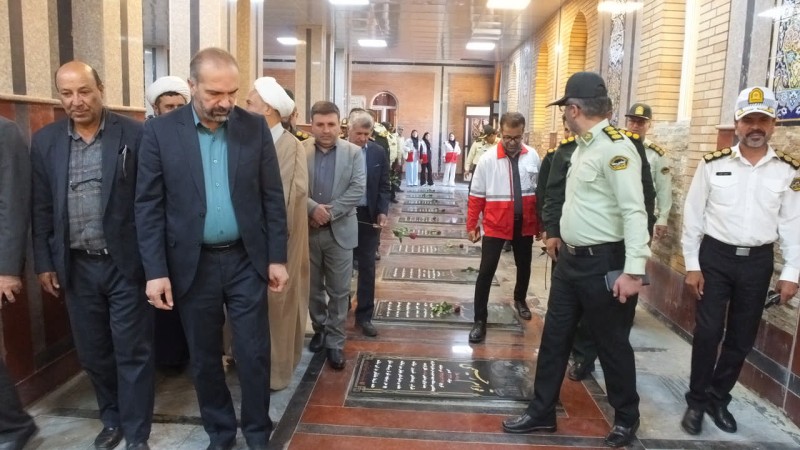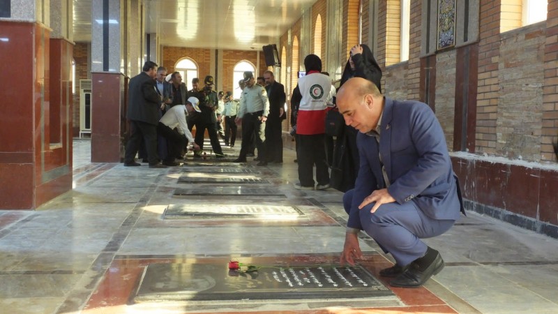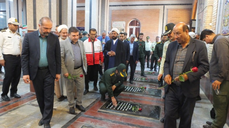 شرکتکنندگان با اهدای شاخههای گل و عطرافشانی قبور مطهر شهدا، ضمن قرائت فاتحه برای آرامش ارواح مطهر آنان، بار دیگر با آرمانهای بلند شهیدان تجدید میثاق کردند.